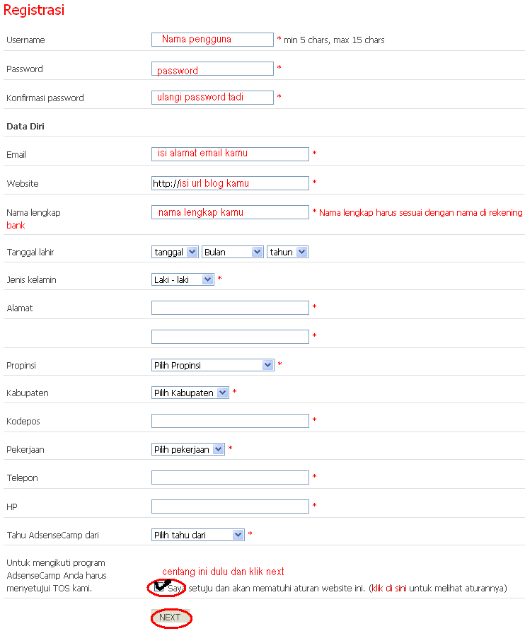 - Isi data login member blogger adsensecamp dengan benar dan klik tombol