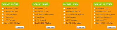 Anekahosting.com adalah salah satu web hosting murah terbaik di indonesia, yang didirikan dengan visi untuk memberikan layanan hosting berkualitas dengan harga yang murah, terjangkau, dan kompetitif. Namun dengan kualitas yang tinggi dan fitur yang sangat lengkap. Sesuai dengan kebutuhan bisnis online di indonesia yang beragam, anekahosting.com juga menyediakan berbagai macam layanan hosting yang beraneka ragam mulai dari Bronze, Silver, Gold, hingga Platinum. Berikut adalah screenshoot-nya, klik untuk memperbesar gambarnya:
